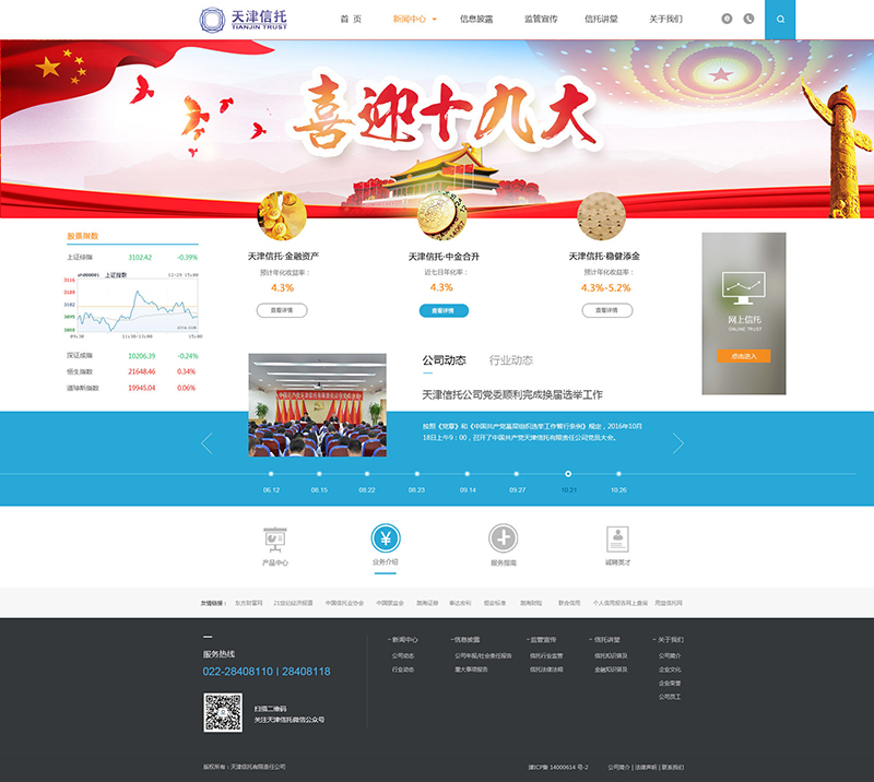 天津信托有限責(zé)任公司(以下簡稱“天津信托”或“公司”)由中國人民銀行天津市分行創(chuàng)建,于1980年10月20日成立,并于同年11月1日正式對外營業(yè),是國內(nèi)早成立的信托投資機(jī)構(gòu)之一。2002年9月14日,中國人民銀行銀復(fù)(2002)263號《中國人民銀行關(guān)于天津信托投資公司重新登記有關(guān)事項的批復(fù)》批準(zhǔn),天津信托完成了重新登記...