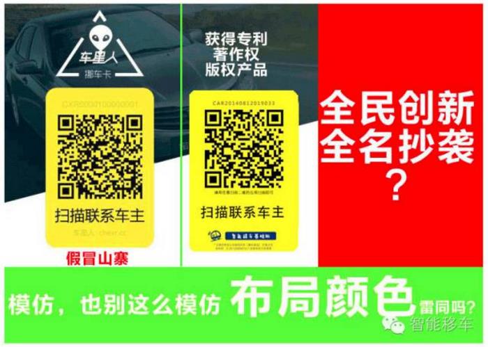 山寨賞析: A、杭州嘀嗒科技-車星人挪車卡 (淘寶已經(jīng)處罰刪除 也是提出專利無效的請(qǐng)求者)