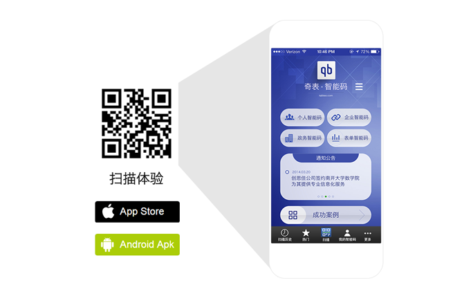 智能碼是創(chuàng)思佳奇表團(tuán)隊(duì)經(jīng)過(guò)多年技術(shù)積累整合客戶移動(dòng)互聯(lián)網(wǎng)需求研發(fā)的一種基于個(gè)人及企業(yè)快速創(chuàng)建移動(dòng)互聯(lián)網(wǎng)應(yīng)用與數(shù)據(jù)整合、垂直移動(dòng)互聯(lián)網(wǎng)營(yíng)銷的智能平臺(tái)。用戶登錄后根據(jù)不同的需求使用堆積木的方式簡(jiǎn)單操作就可以創(chuàng)建個(gè)人智能碼或企業(yè)政務(wù)智能碼應(yīng)用系統(tǒng)。每個(gè)智能碼擁有一套自動(dòng)創(chuàng)建的系統(tǒng)(系統(tǒng)包括移動(dòng)應(yīng)用、微網(wǎng)站、智能表單、數(shù)據(jù)分析等組件);每套系統(tǒng)對(duì)應(yīng)唯一的智能碼或二維碼標(biāo)識(shí),當(dāng)用戶用移動(dòng)端掃描,能夠快速呈現(xiàn)并智能解析接入相對(duì)應(yīng)的用戶創(chuàng)建的數(shù)據(jù)平臺(tái),完成數(shù)據(jù)的交互與展示。